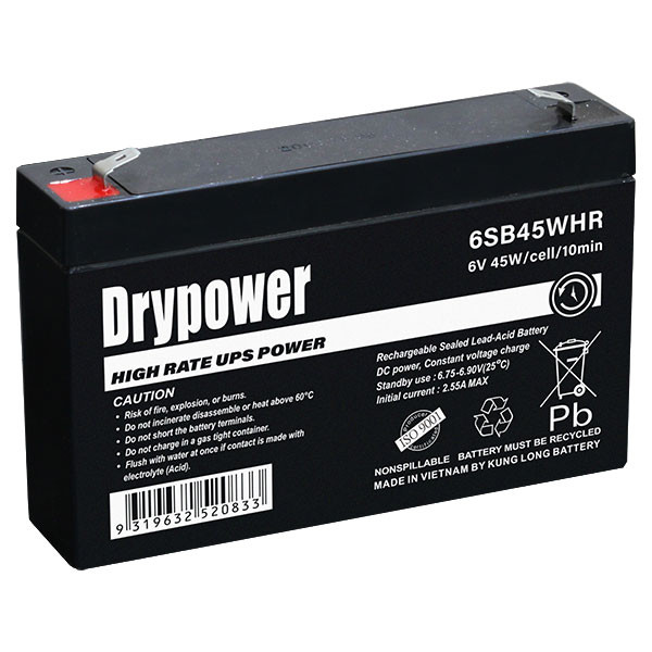 Drypower 6V 45W/Cell (10min) Sealed Lead Acid High Rate Battery for Standby and UPS