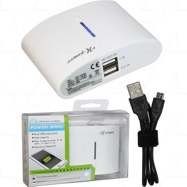 38 watt hour 10400mAh with dual USB output powerbank battery suitable for most mobile devices and tablets. The unit can be charged whilst also at the same time being used for output supply to your portable devices. This high capacity mini powerbank is powered inside by premium quality, high capacity Samsung lithium ion batteries. Features: - Dual output with combined 3.1A output: 1 x 2.1A USB output and 2nd output at 1A.
