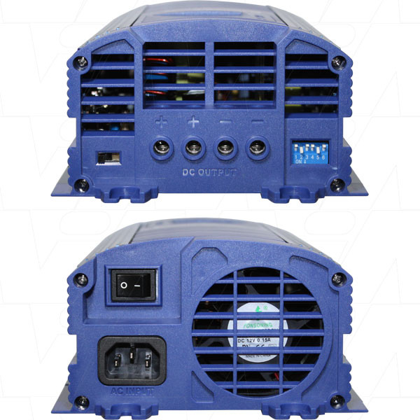 The Motormate BC series of chassis mountable compact AC-DC battery chargers use the latest switch mode technology providing fully automatic battery charger suitable for all lead acid battery technologies - SLA, AGM, Gel, Flooded Wet Cell and Calcium. The input and output are completely isolated. The charger can be used as a power supply to run electronic devices constantly. The BC-01240SCT is a fully automatic charger with overcharge protection with selectable boost/absorbtion charge voltages @ 40amps of 14.2V, 14.6V or 14.8V that drops to 13.2V, 13.5V or 13.8V in a reduced current float charge mode. Also features a thermal control cooling fan with autostart and a 4 colour LED charge mode display Other models are available within the BC series with outputs suitable for 12VDC or 24VDC. Featuring a tough anodized aluminium case with mounting cover and a wide range operating temperature, overload and short circuit protection with LED indication. Click the datasheet link below for full information and specifications. |