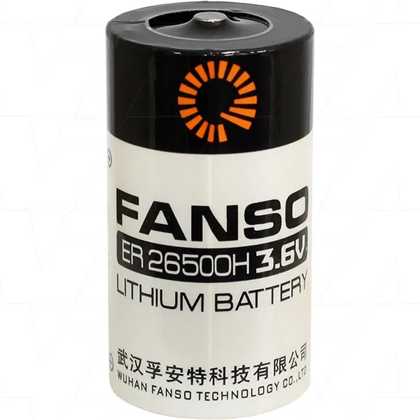 ER26500H primary lithium battery. Wuhan Fanso high capacity range. Features: - Long shelf life: self discharge rate less than 1% at 25°C.