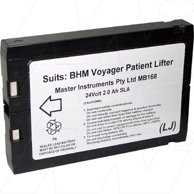 Suitable For: BHM Medical Inc Voyager Portable Compatible With: BHM Medical Inc #A8500 Comments Battery suitable for BHM Medical Inc Voyager portable patient lifter. Replaces Battery #A8500.