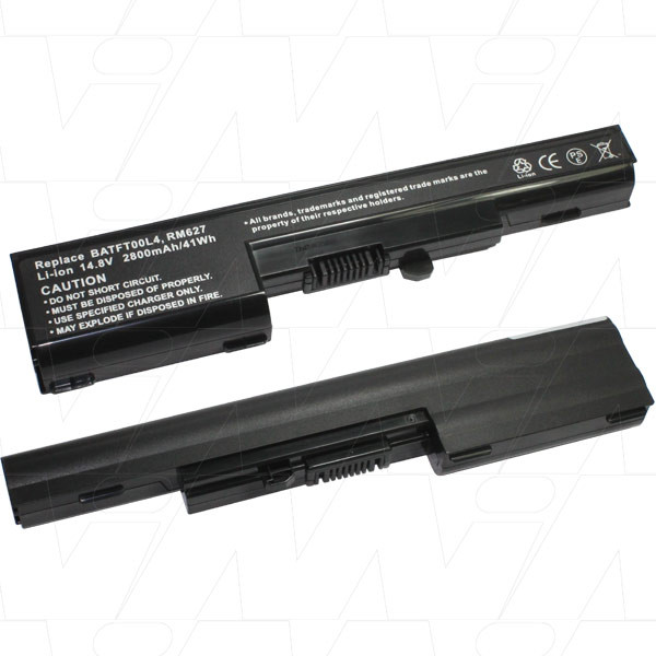 Application Notebook, Netbook, Laptop Computer Original Brand Compal, Dell Chemistry Lithium Ion Voltage 14.8V Nominal Capacity 2800mAh Brand Master (this product is a compatible alternative to that of the original brand) Width 40.1mm Height 20.3mm Length/Breadth/Depth 203.8mm Weight 214g Suitable For: Compal JFT00 Dell Vostro 1200 Compatible With: Compal BATFT00L4 Dell BATFT00L4 Dell RM627 Cell Type Used: Panasonic Cells Used for Increased run time. Comments 4 cell 41W/Hr battery Cells inside this battery pack are premium quality made in Japan.