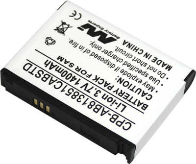 Application Cellular Telephone Original Brand Samsung Chemistry Lithium Ion Voltage 3.7V Nominal Capacity 1400mAh Brand Master (this product is a compatible alternative to that of the original brand) Suitable For: Samsung BlackJack II Samsung i616 Samsung i617 Samsung SGH-i616 Samsung SGH-i617 Compatible With: Samsung AB813851CA Samsung AB813851CABSTD