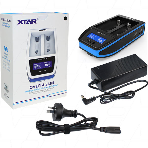 | Description | XTAR OVER 4 SLIM LiIon Charger with LCD Display - 12VDC 4A Input for the Fastest Charging of 1-2 LiIon Cells Sizes 18650 - 26650. |