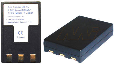 Consumer Digital Camera Battery NB-1L Canon Application: Digital Still Camera Chemistry: Lithium Ion (Li-Ion) Voltage: 3.7V Nominal Capacity: 1000mAh Width 32.2mm Height 10.6mm Length/Breadth/Depth 49.8mm This battery is a fully compatible alternatve to the original branded product