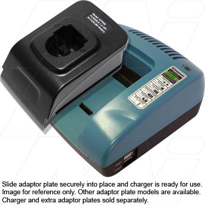 Adaptor plate for ACMTE power tool charger (sold separately).