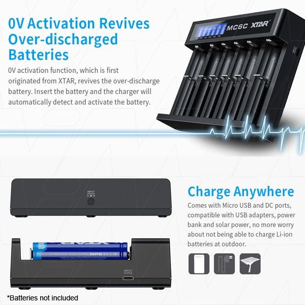 XTAR MC6C USB Input Automatic Six Channel 1-6 Cell Lithium Ion Battery Charger